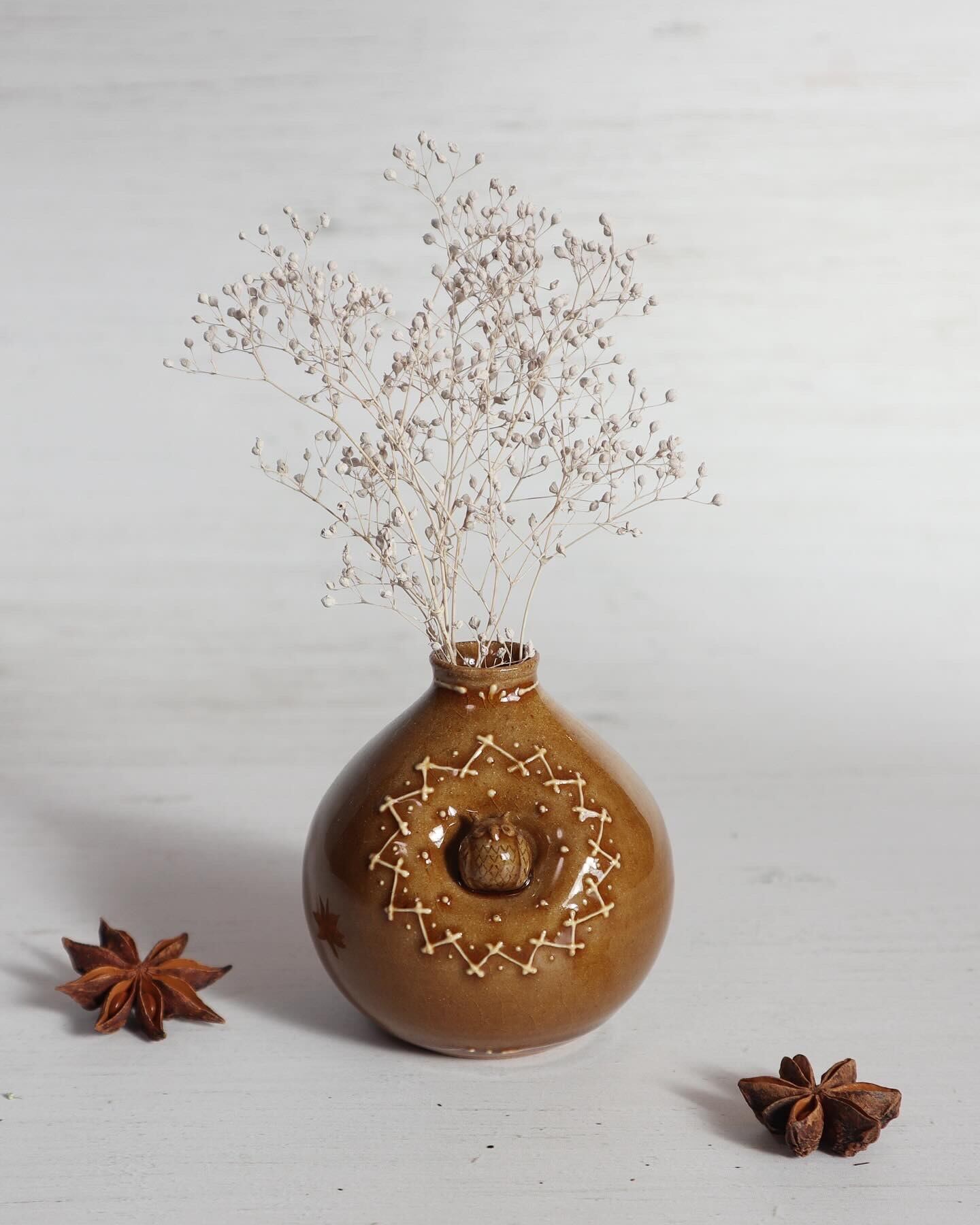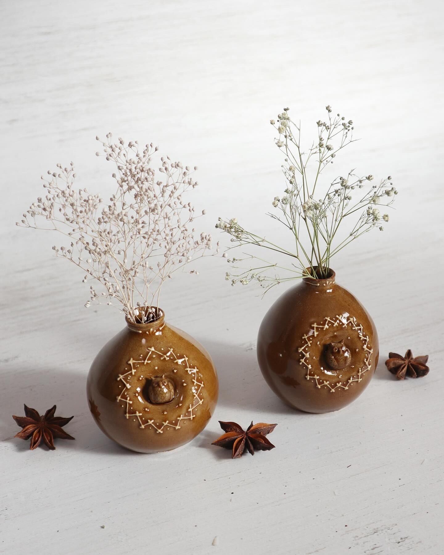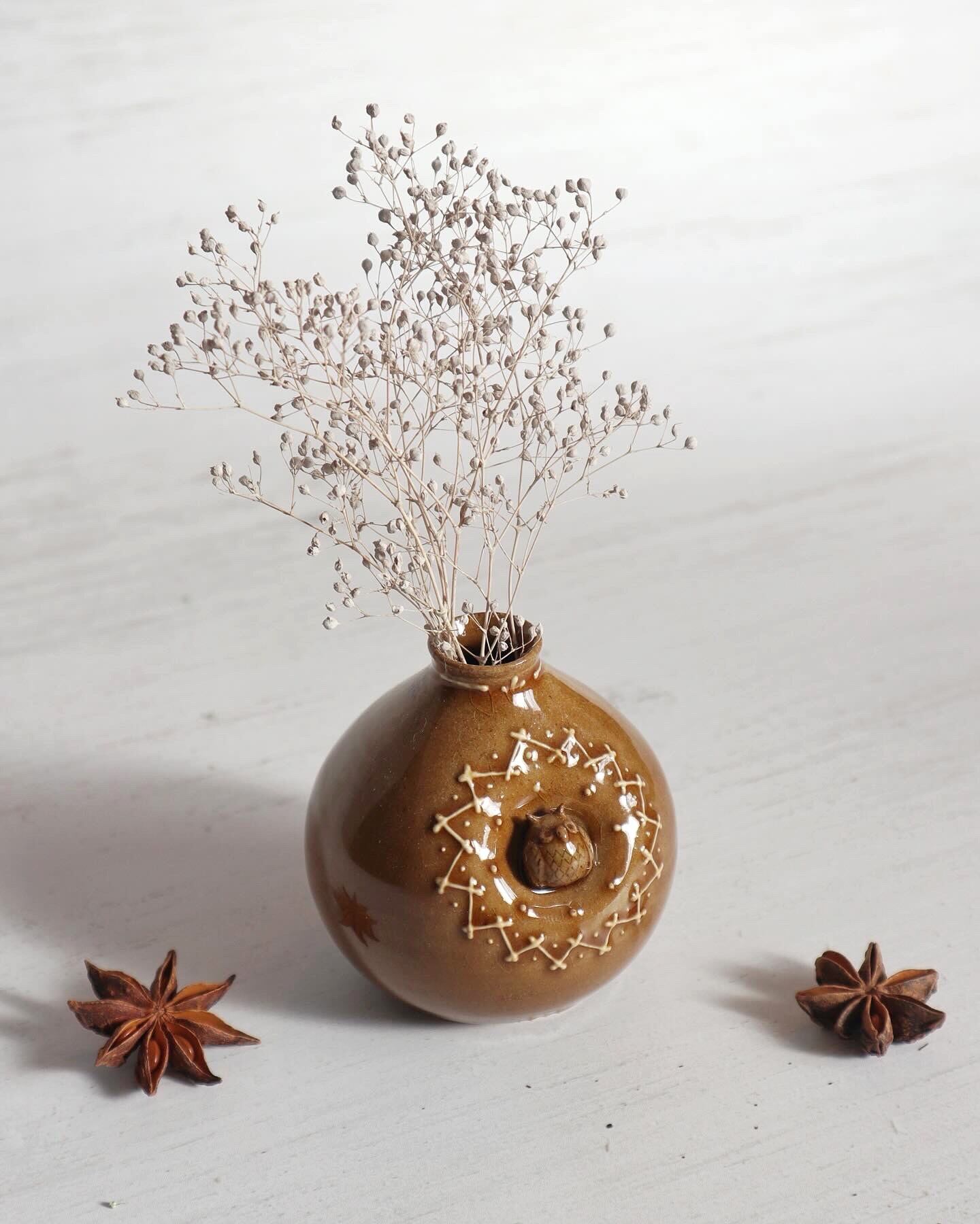 ミミズクフラワーベースを飾って、特別な癒しの時間をお楽しみください。