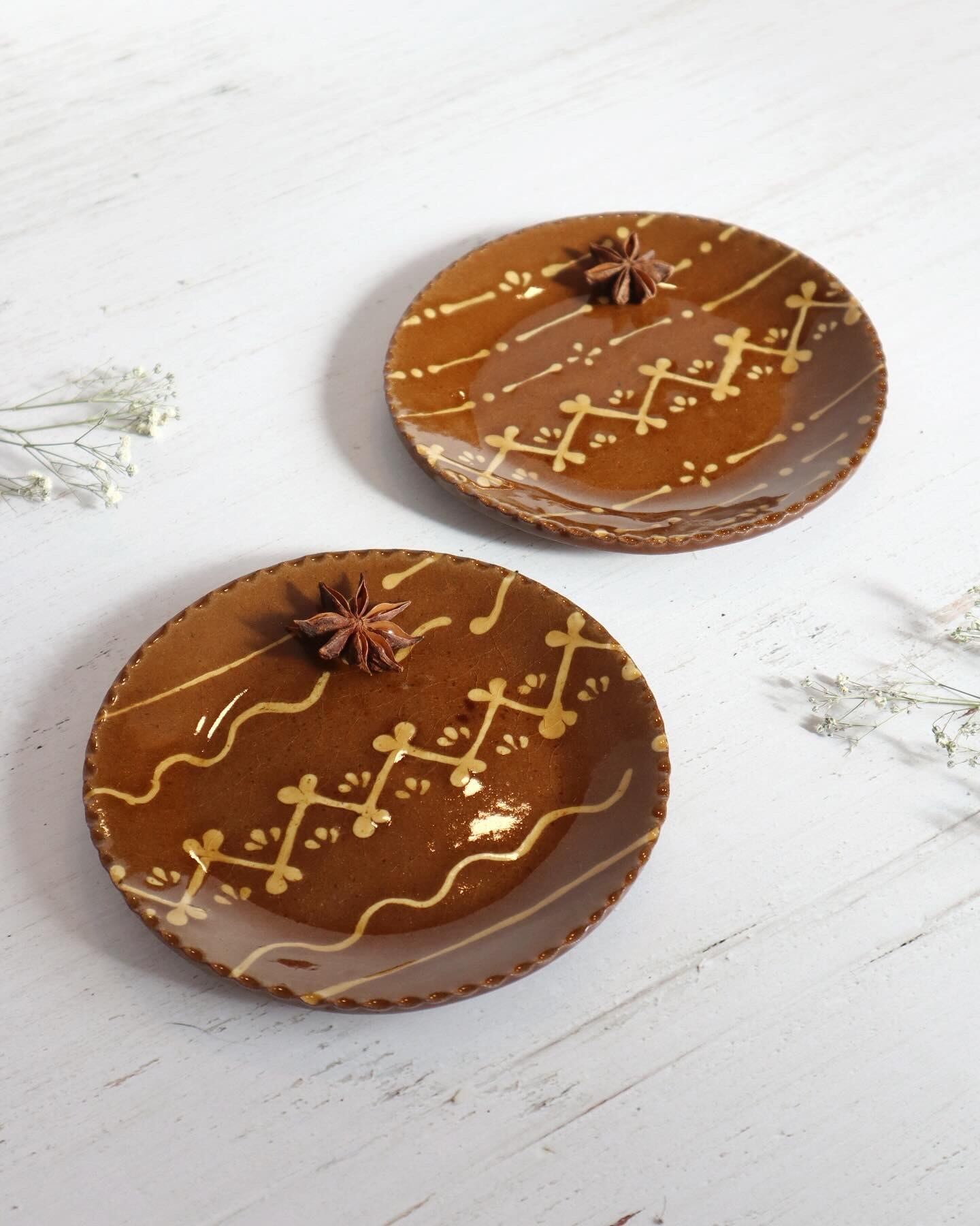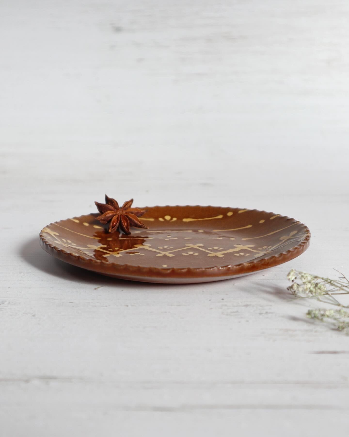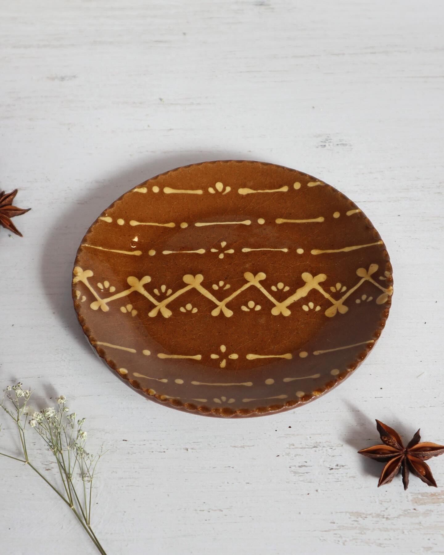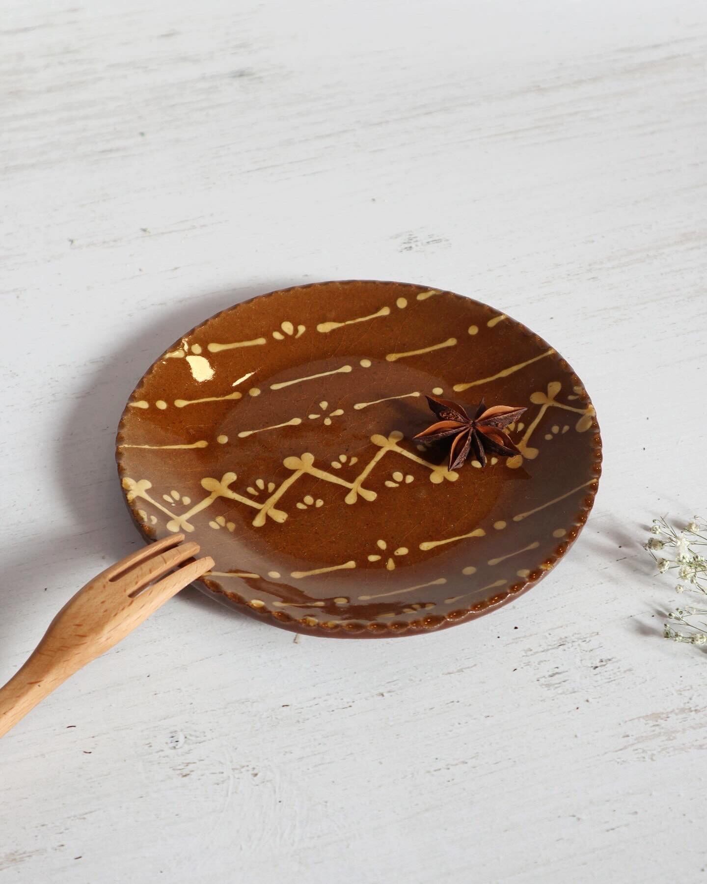 スウェーデンの昔ながらの刺繍をモチーフに作った5寸サイズのスリップウェアです。