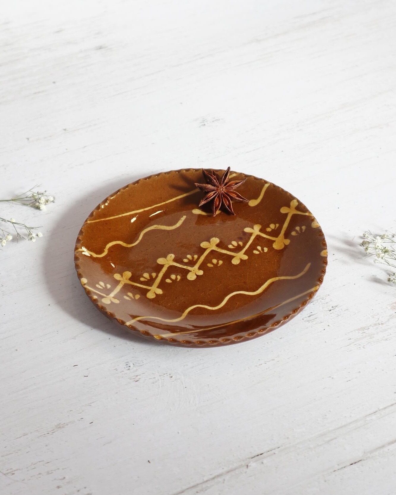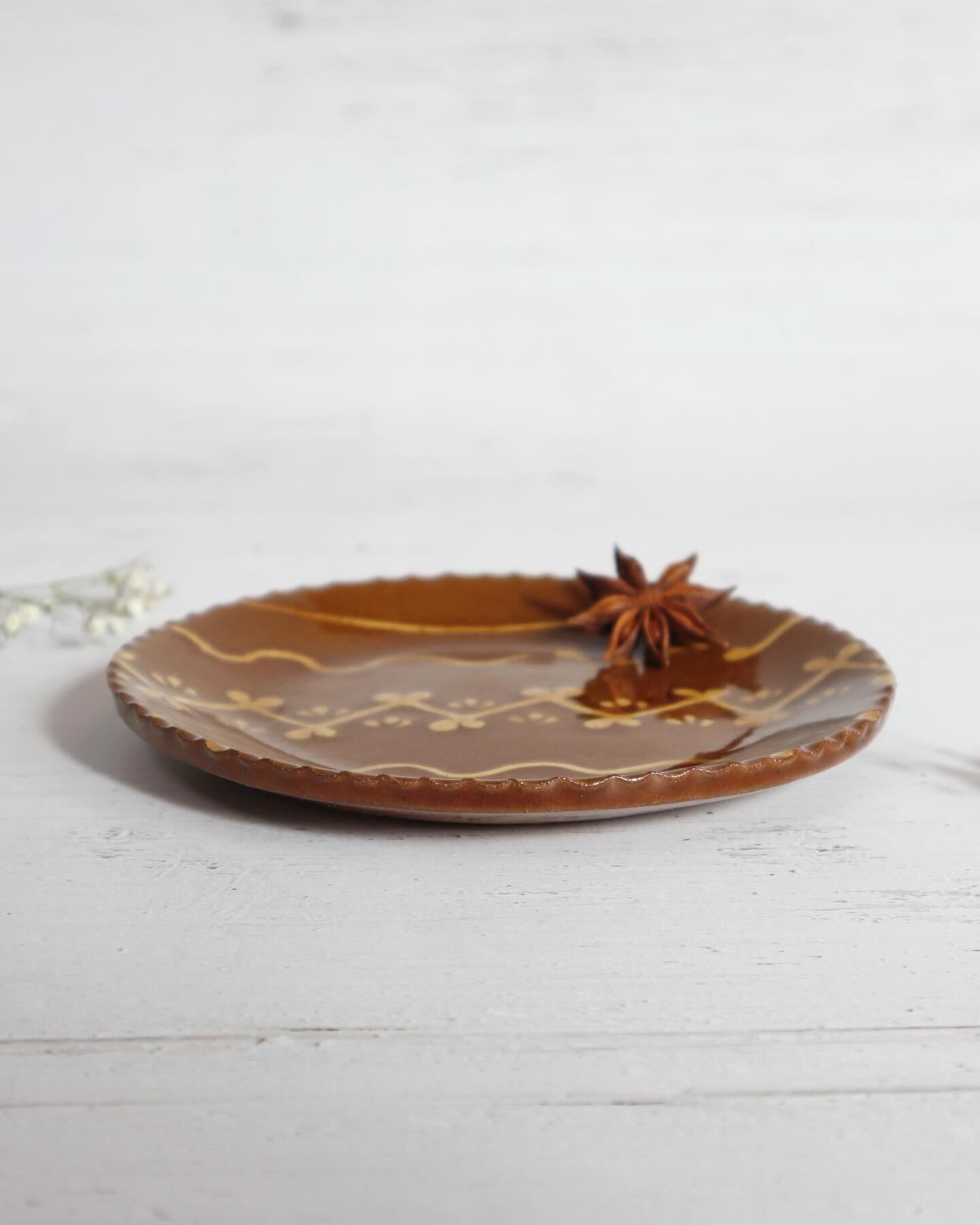 スリップウェア特有のやさしい色味と模様が食卓を温かい雰囲気で彩ります。
